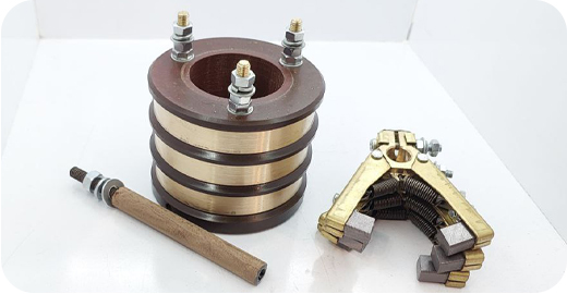 در دو طرف حلقه لغزان ، جاروبک (Carbon Brushes) یا اصطلاحاٌ ذغال صنعتی قرار می گیرد که توسط پایه های فنری (Holder Brushes) یا جاذغالی اتصال کامل بین جاروبک کربنی با کلکتور را برقرار می کند و جریان الکتریکی را به تیغه های متصل به سیم پیچ منتقل می کند.